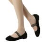Rebel Jane Shoecessories™ are made from 100% vegan leather embellished with golden metal studs and pearl studs with golden bezels; it is backed with black PU with a soft black elastic band. Measure ¾” wide. Fits most size feet.